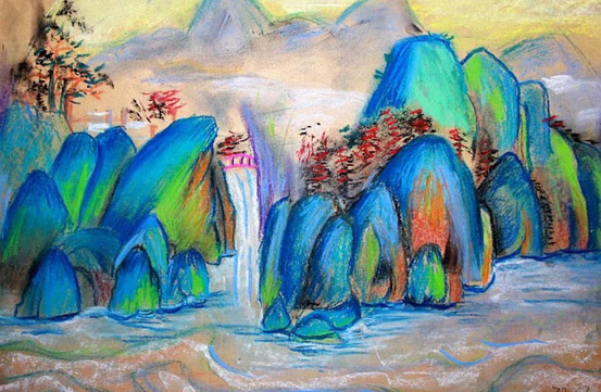 色粉颜料性质较为松软,勾轮廓稿时好用炭笔(条),不宜用石墨笔勾绘,用纸方面,好使用本身具有细小颗粒状的纸张,以便颜料可以更好地附着画面上。